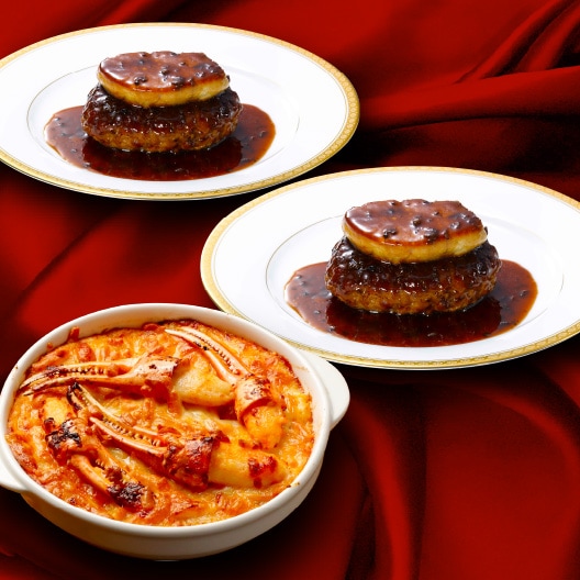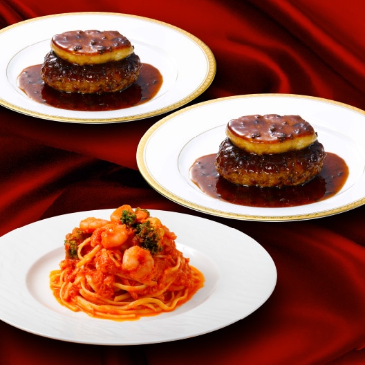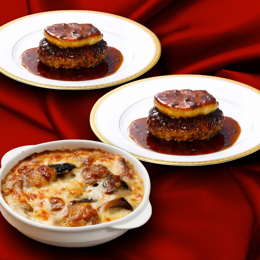 「俺のフレンチ」でも人気の逸品、ロッシーニ風ハンバーグを、単品はもちろん、さまざまなセット商品としてご用意しています。