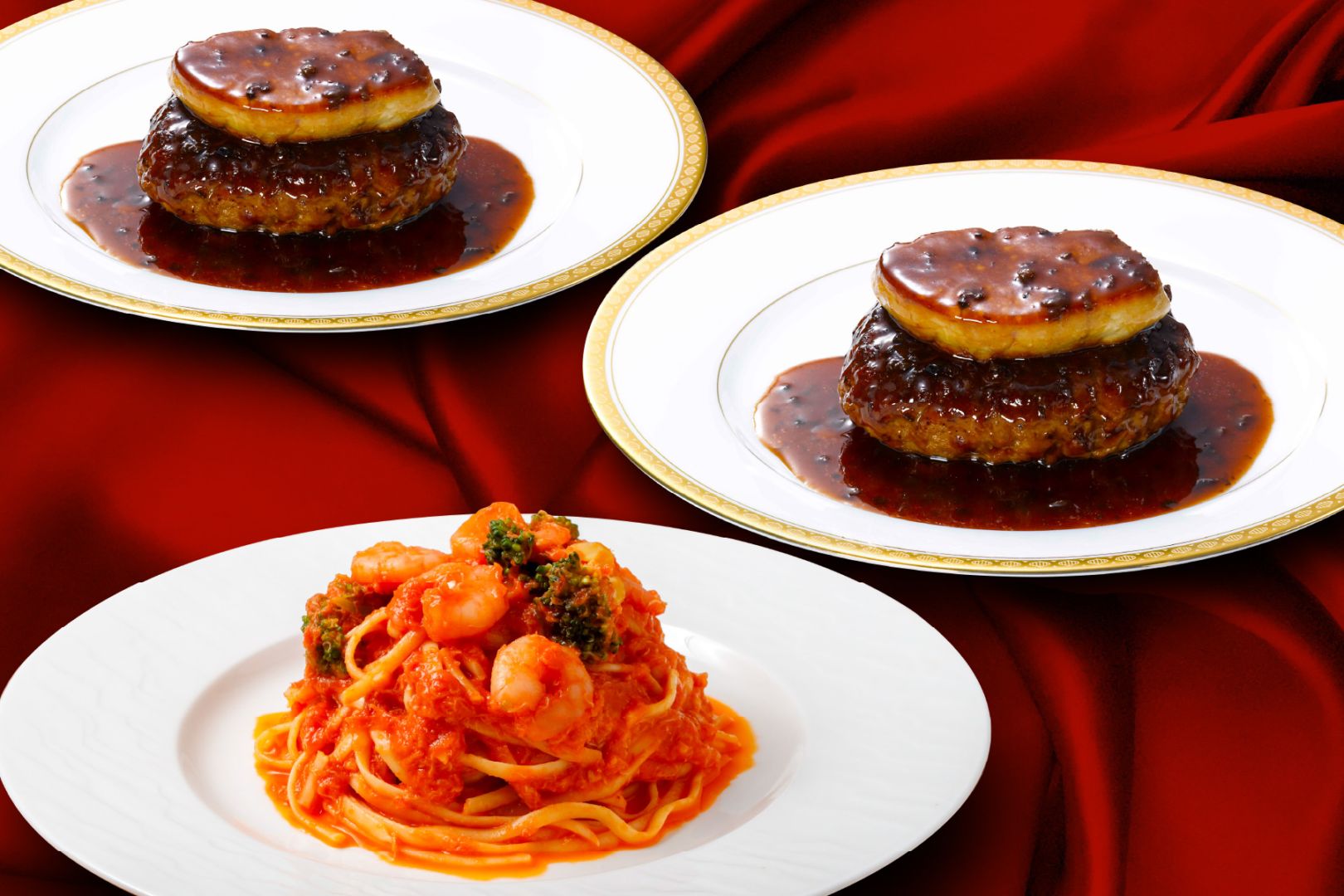 【送料無料】ロッシーニ風ハンバーグセット(渡り蟹と海老のトマトクリームソースパスタ)【全国離島配送不可】