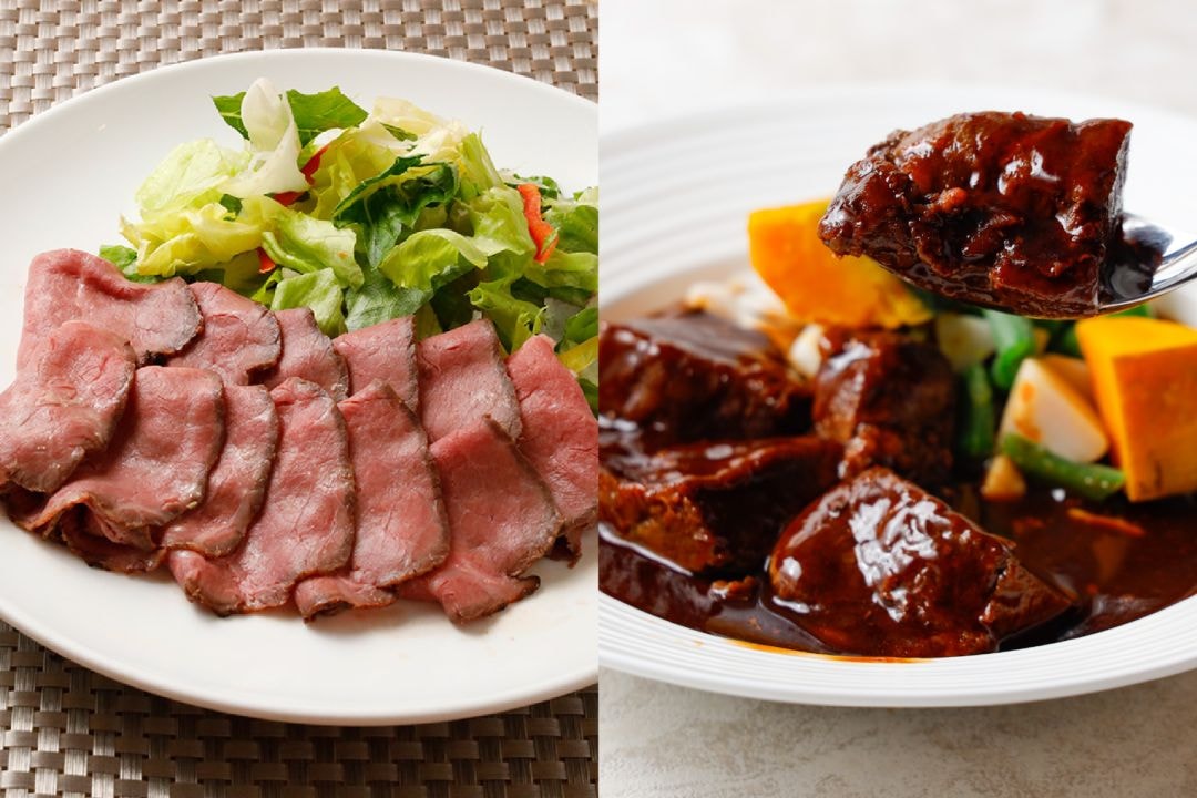 牛ほほ肉(ブラジル産)、デミグラスソース(トマトペースト、なたね油、砂糖、牛脂豚脂混合油、デキストリン、赤ワイン、食塩、みそ、ぶどう糖、全粉乳、果糖、ブラウンルウ、ビーフエキス、ビーフ調味料、オニオンパウダー、ガーリックパウダー、酵母エキス加工品、香辛料、野菜エキス、玉ねぎエキス、酵母エキス)、ワイン濃縮調味液、グラニュー糖、食塩、野菜だし入り調味料、ブラックペッパー、チキンコンソメ、ベイリーブス/増粘剤(加工でん粉)、着色料(カラメル)、調味料(アミノ酸等)、乳化剤、香料、酸化防止剤(亜硫酸塩)、炭酸Mg、酸味料、(一部に乳成分・小麦・牛肉・大豆・豚肉・鶏肉を含む)