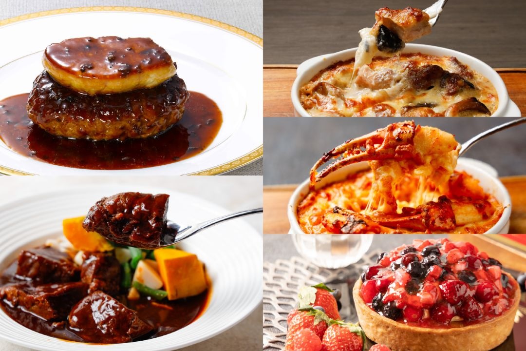 人気のロッシーニ風ハンバーグから豪華海鮮グラタン、特製ドームタルトまで。